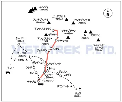アンナプルナベースキャンプトレッキングは一日5~6時間ぐらいの距離を歩くトレッキングです。日によっては8~9時間、歩くこともあります。高地を歩くのは平地よりも大変ですのでトレッキングの前に日本で山歩きをするなどして体を慣らしておいてください。心臓、肺や血圧などの病気で薬を飲んでいる方は先にお知らせください。
