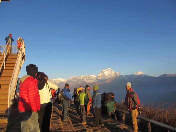 アンナプルナ街道に点在する二つの有名な温泉、ジヌダンダの温泉とタトパニの温泉、そして雄大なヒマラヤの景観を満喫できる美しいトレッキングコースです。ポカラからアクセスしやすいゴレパニ周辺は初心者にも歩きやすい人気ルート。ヒマラヤの展望台プーンヒルでは、ダウラギリやアンナプルナなど8,000m峰の壮大なサンライズをご覧いただけます。トレッキング後は天然温泉で疲れを癒し、心身ともにリフレッシュ。グルン族やマガル族が暮らすダンプス、ランドルン、ゴレパニなどの山村を巡り、3〜4月にはシャクナゲの美しい花道も楽しめます。