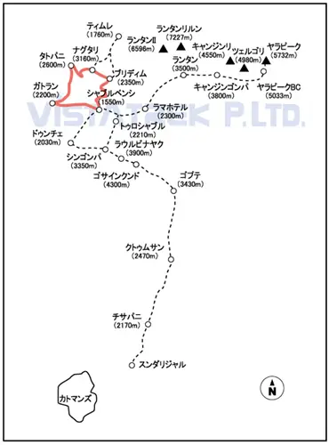 ※トレッキング日数は実質4泊5日です。 ※カトマンズ-シャブルベンシ間のローカルバスをジープ(片道20000円)に変更することも可能です。