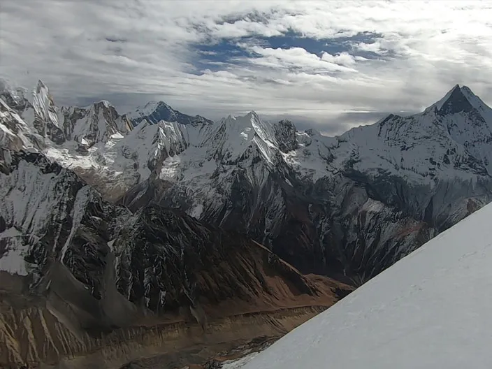 ネパール語でTharpu Chuliとしても知られるテント・ピーク (標高5695 m) は、アンナプルナⅠ峰近く のアンナプルナ・ベースキャンプにあります。このルートでは、アンナプルナ地域を歩き、ネパー ルの多様な動植物や文化を楽しみながら、テント・ピークへの挑戦的な登山を楽しむことができま す。テント・ピークはさほど高い山ではありませんが、冒険心に満ちたテクニカルな山です。 テン ト・ピークの頂上からの眺めには、アンナプルナ、ヒウンチュリ、フィッシュテイル、ガンガプル ナなどが含まれます。18 日間の旅はカトマンズで始まり、カトマンズで終わりますが、実際のトレ ッキングはポカラ近くのナヤプルから始まります。またカスタマイズも可能です。 テント・ピークに登るのに最適な月は、9 月、10 月、11 月、4 月、5 月です。